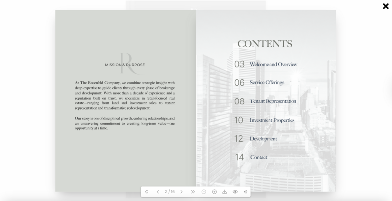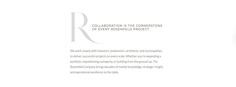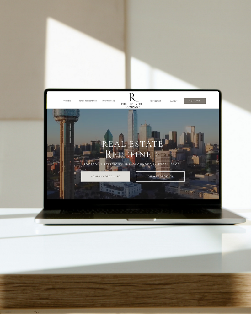 Below is a recap of the visual system we created for The Rosenfeld Company. The new logo, color palette, typography, and curated imagery work together to convey the brand’s strength, professionalism, and modern investment perspective.